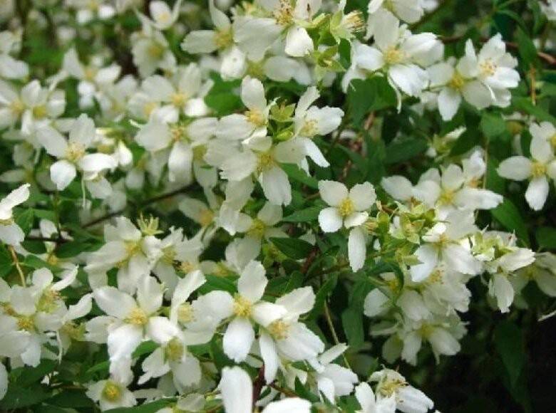 Компактный, зимостойкий кустарник высотой 1–1,5 м с ажурной кроной, тонкие ветви которого под тяжестью многочисленных белых цветков (диаметром до 2 см) изящно прогибаются. Отличается тонким земляничным ароматом, цветет в июне-июле, предпочитает солнце и умеренно плодородные почвы.