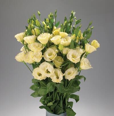 Эустома Йеллоу серии "АВС" - эффектное высокое растение высотой 90-115 см. Предназначено для получения первоклассной срезки. На длинных стеблях распускается несколько красивых цветов, похожих на бутоны роз. Их ещё называют "Ирландские розы". Цветы крупные махровые нежно-жёлтой окраски, диаметром 5-6 см. Великолепно смотрится в срезке. В открытом грунте не зимует. Может выращиваться как комнатное растение.