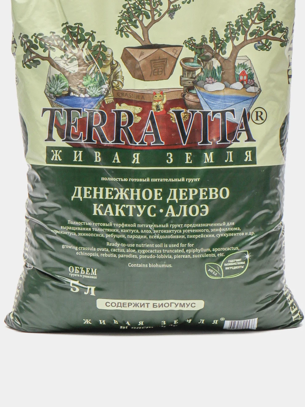 Полностью готовый торфяной питательный грунт для выращивания толостянки, кактуса, алоэ и других видов садовых растений. Произведён на основе фрезерного торфа верхового типа, нейтрализованного известняковыми материалами.