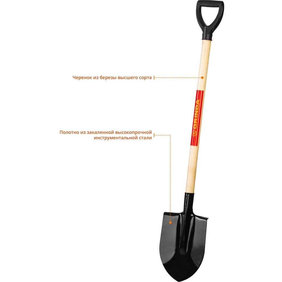 Лопата подходит для садовых участков и строительных площадок. Изготовлена из закалённой инструментальной стали и имеет специальное защитное покрытие.