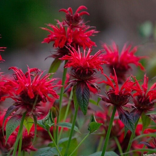 Многолетник в виде плотных кустов высотой около 70см, Цветки у монарды трубчатые, двугубые, собраны в головчатые соцветия на верхушке у стебля, часто довольно необычно – в виде канделябра и в пазухах стеблей. Цветут разные виды с июня по сентябрь, каждый более месяца.