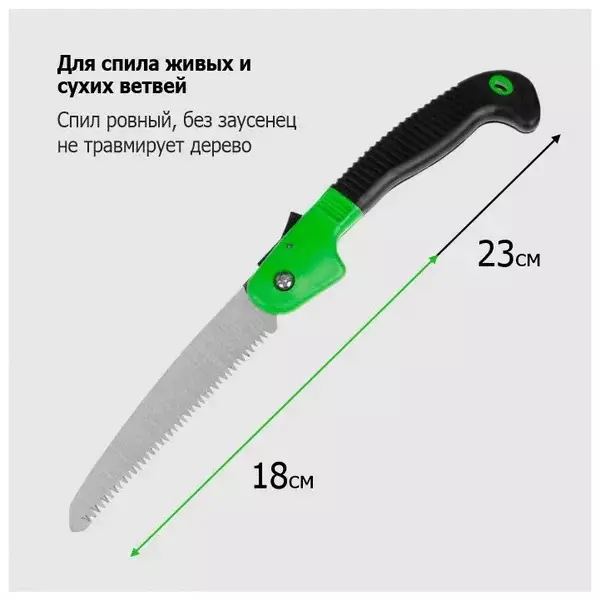 Садовая пила - незаменимый инструмент для садово-огородных работ, при строительных работах, а также в походных условиях. Садовой пилой можно производить обрезку деревьев, кустарников, пилить различные строительные материалы. Фиксатор надежно закрепляет полотно в рабочем и нерабочем положении. Эргономичная ручка позволяет комфортно удерживать инструмент в руке.