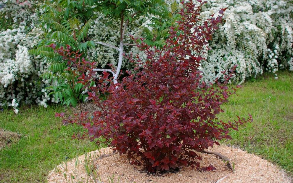 Компактный кустарник с плотной кроной высотой и диаметром около 1,5 м. Листья глубоко надрезанные, при распускании красивой медно-оранжевой окраски и пурпурные летом. Цветёт обильно бело-розовыми цветками. Светолюбив. В тени листья теряют насыщенный красный оттенок и становятся зеленоватыми. Хорошо переносит стрижку и омолаживающую обрезку. Устойчив к городским условиям, вредителям и болезням. Этот сорт часто используют для создания живых изгородей, контрастных цветовых акцентов в саду и одиночных посадок.