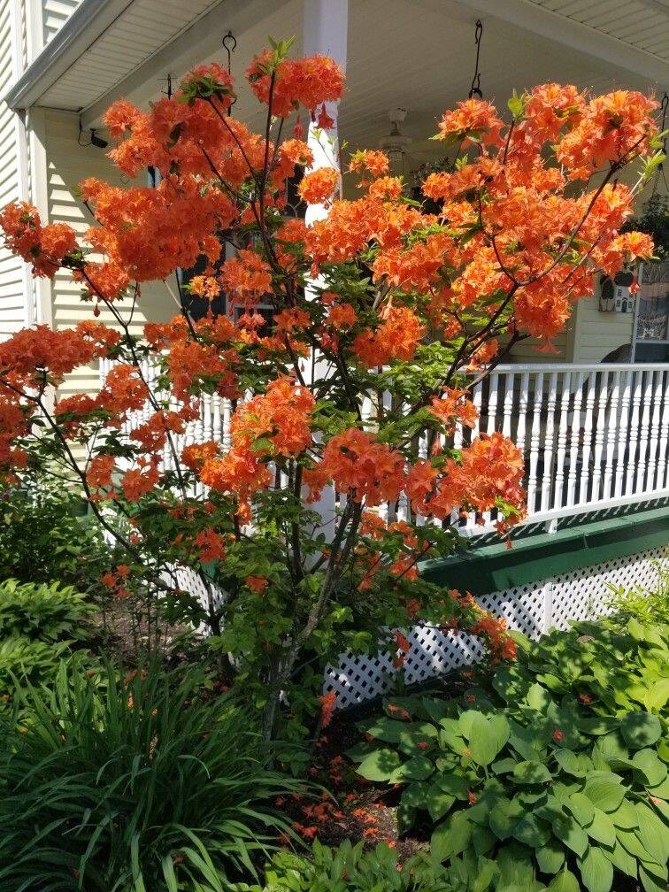 Сорт американской селекции с яркими красно-оранжевыми ароматными цветками (до 6-8 см), собранными в шаровидные соцветия. Куст достигает 1,2–1,8 м в высоту, цветет обильно в мае-июне, требуя кислой, рыхлой почвы, полутени и регулярного полива.