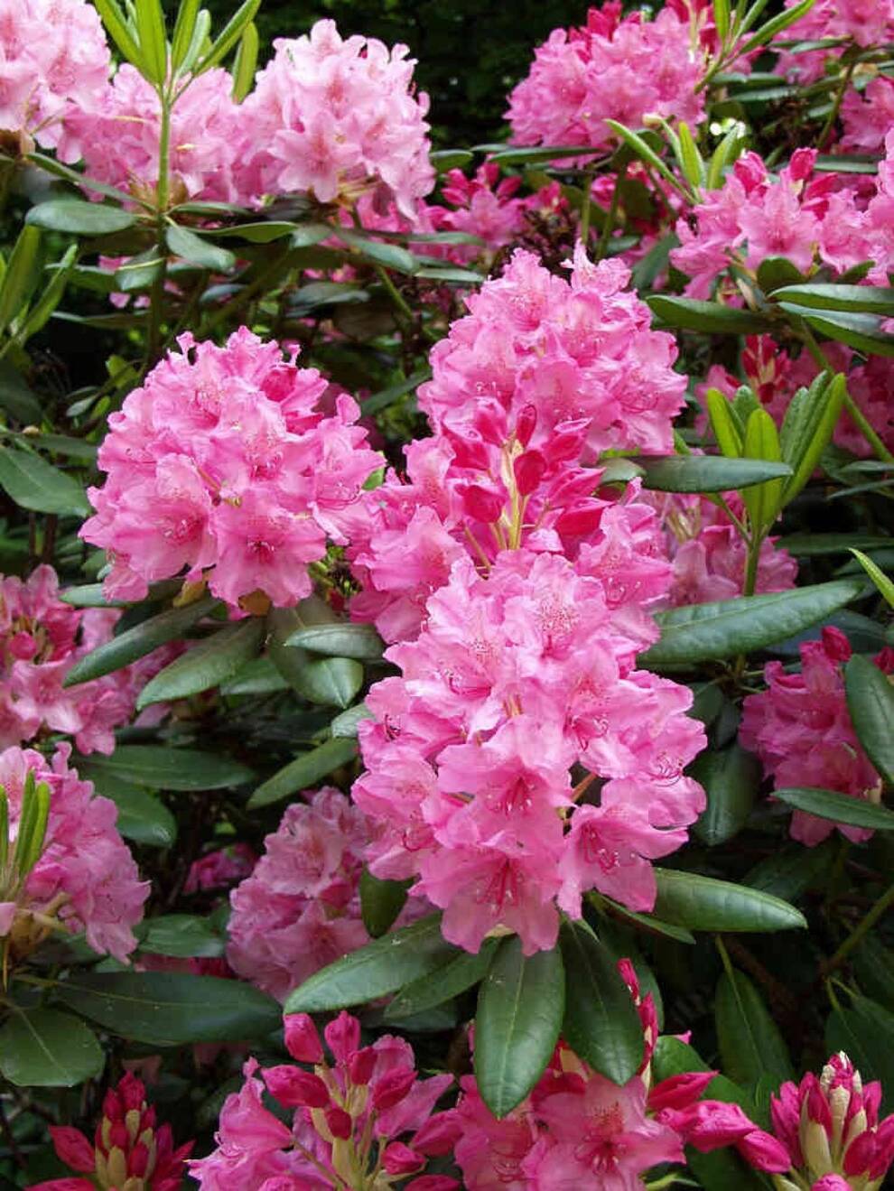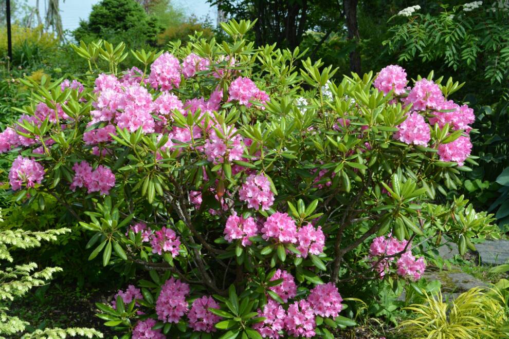 Вечнозеленый сорт, отличающийся высокой морозостойкостью до -36. Это быстрорастущий кустарник с шаровидной кроной до 1,5м в высоту, цветущий в июне крупными, ярко-розовыми соцветиями с красноватыми крапинами. Предпочитает полутень и кислые почвы.