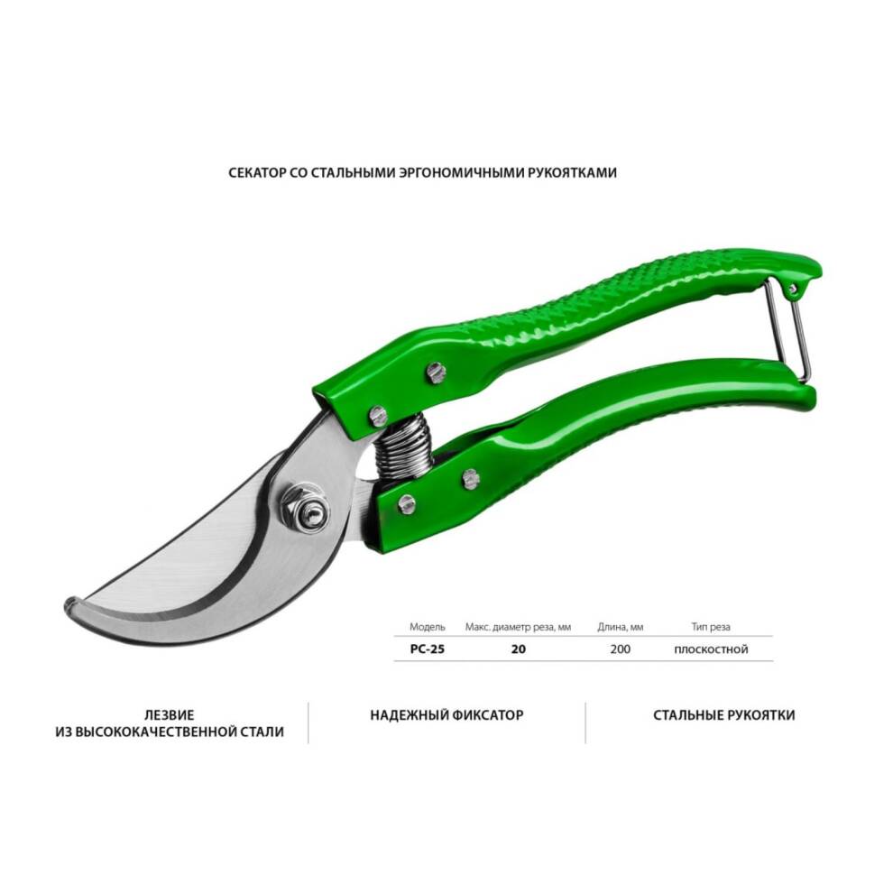 Секатор PC-25 200мм со стальными эргономичными рукоятками плоскостной РОСТОК