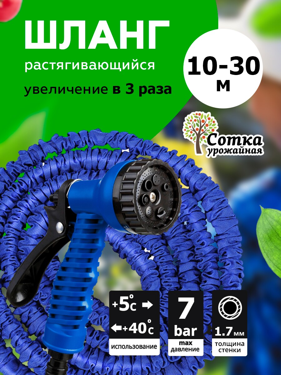 Шланг поливочный растягивающийся УРОЖАЙНАЯ СОТКА 10,0м -30,0м