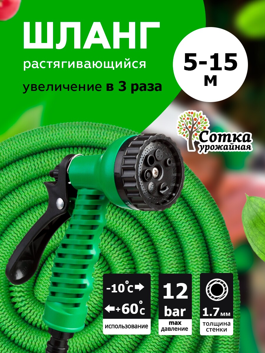 Шланг поливочный растягивающийся Урожайная сотка Эксперт 5,0 м-15,0 м