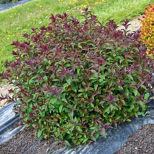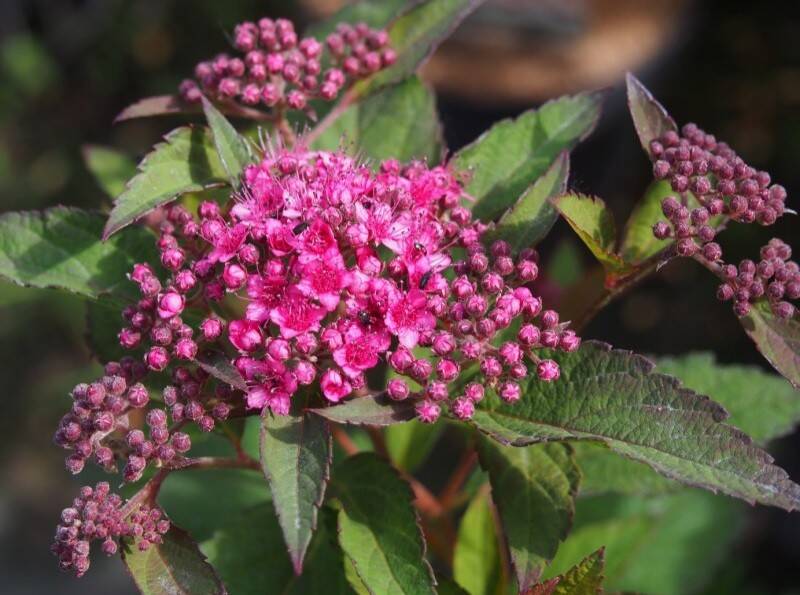 Кустарник с округлой кроной (до 80 см высотой), известный эффектной сменой окраски листвы: молодые листья пурпурно-фиолетовые, летом зеленеют, а осенью становятся ярко-алыми или оранжево-красными, цветет ярко-розовым.