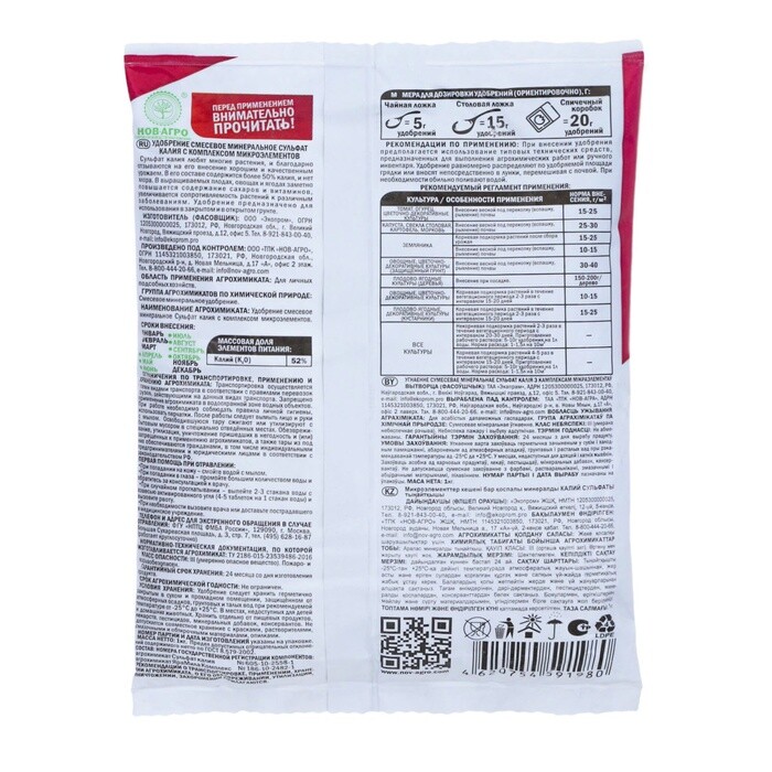 Высококачественное калийное удобрение, содержащее 50% калия и 18% серы. Оно подходит для всех типов почв и является идеальным выбором для повышения урожайности и улучшения качества плодов.